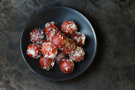 Indian jujube, berry or ber boiled in jaggery syrup with sweet and sour taste called Labdo, typical road side seasonal snack food