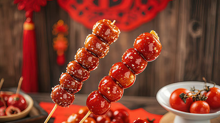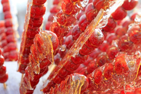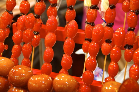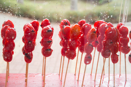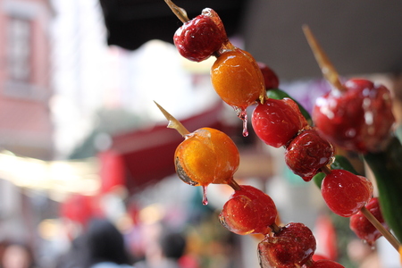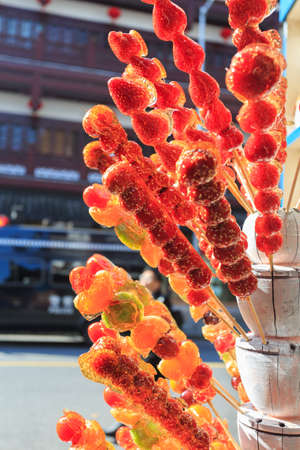 Traditional Chinese Dessert - Candied Fruit on a Wooden Stick