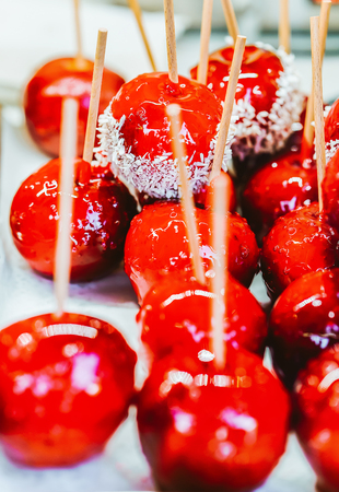 Red glazed apples on Christmas market in Vilnius in Lithuania.