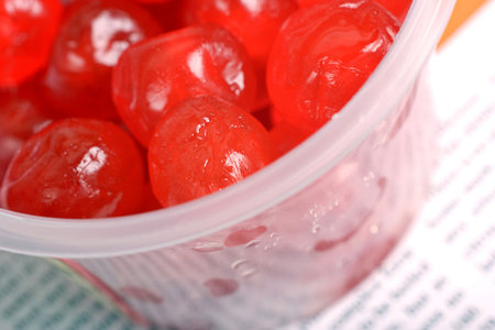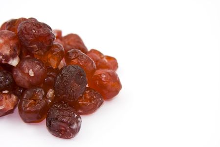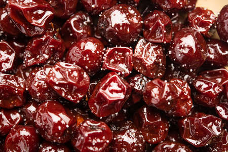 Chinese candied fruits and berries, Hawthorn and strawberries in sesame and sugar syrup.
