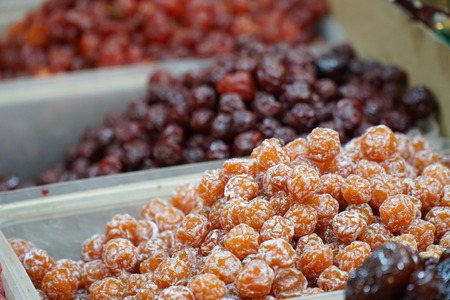 Candied fruit for sale at the market in the city of Puebla, Mexico