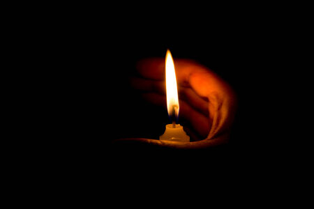 Hope in the Dark, Close Up of Hand Holding Candle in Blue Atmosphere, Unity and Solidarity Concept