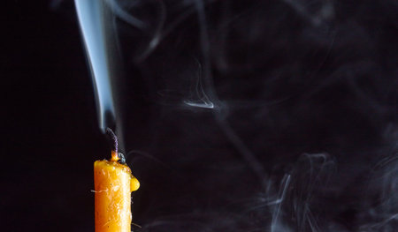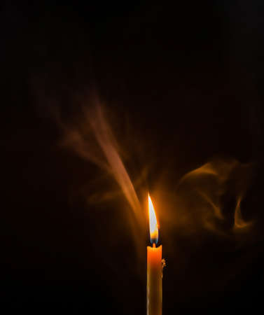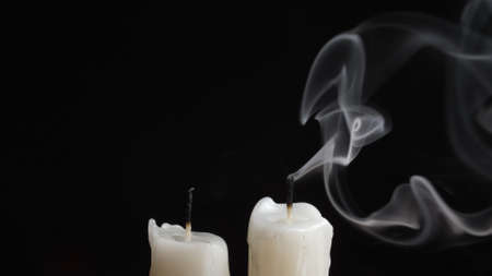 Smoke from an extinguished candle on a dark background. The concept of spirituality and the end of life.