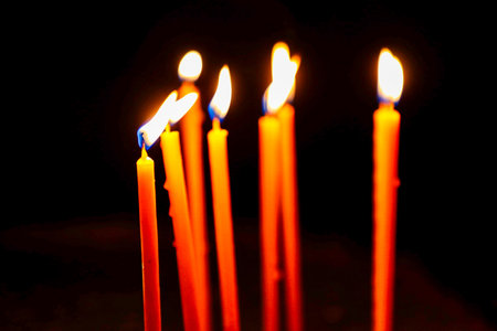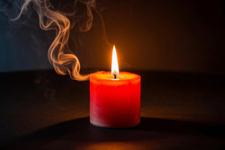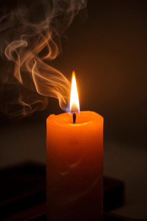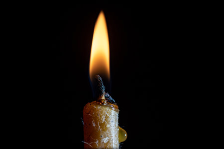 Flickering candle flame against a black background creates a warm and gentle ambiance