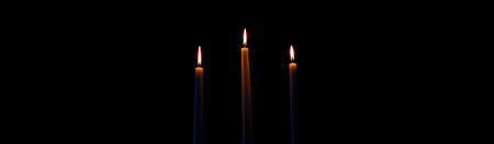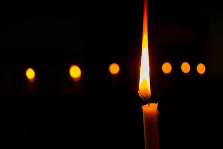 Group of still life golden candle light with dark background. Abstract background for pray or meditation caption and hope concept.