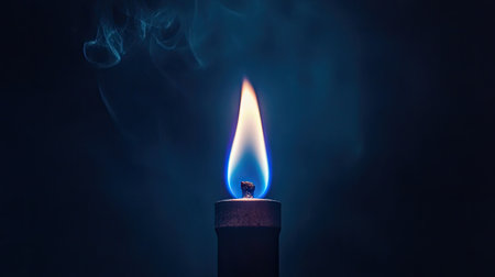 A serene candle flame burning gently in the dark, with the simplicity of the moment enhanced by the black background.