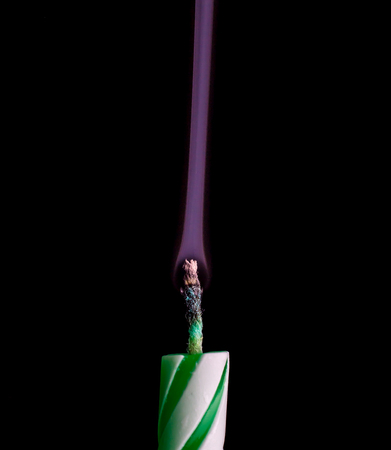 candle with smoke and flame photographed in the studio with color foils before the flashes