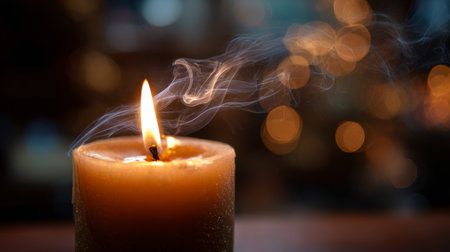 This captivating image features a glowing candle with a dancing flame and swirling smoke, evoking a serene atmosphere perfect for relaxation or meditation.