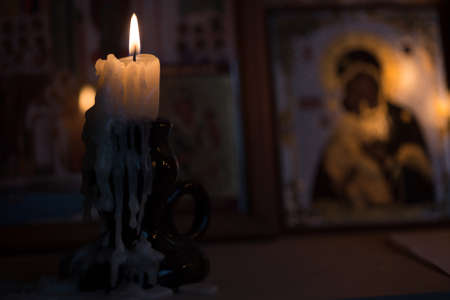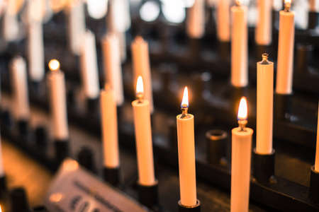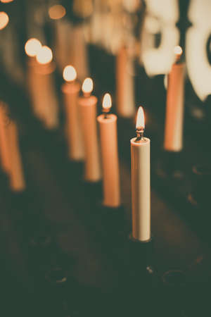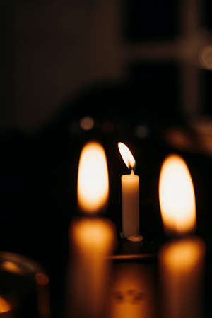 Candles in a Christian church during prayer or church service. Faith, God concept