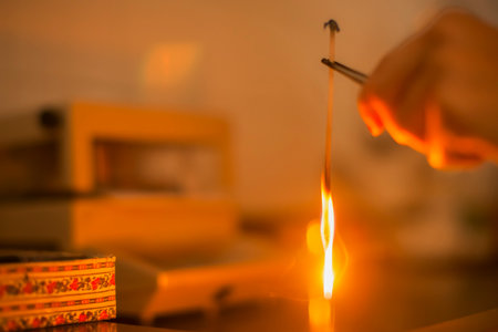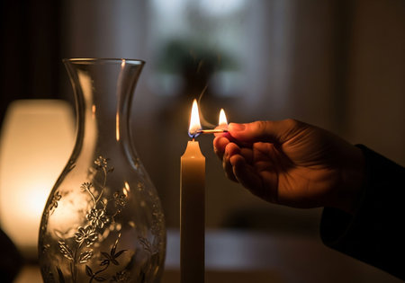 Lighting a candle with matches creates a warm, cozy atmosphere ideal for relaxation and mindfulness