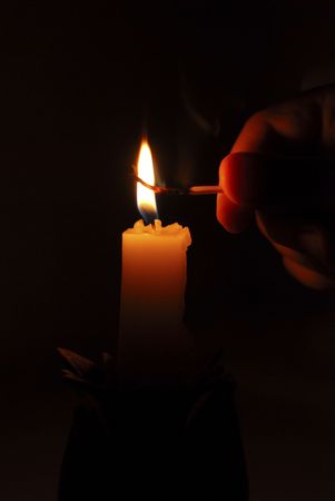 Photo of lightening a candle on black background