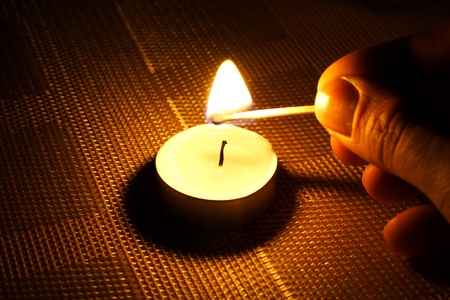 Man's hand is lighting a candle