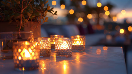 The flickering candles added a touch of elegance to the rooftop mixology class. 2d flat cartoon