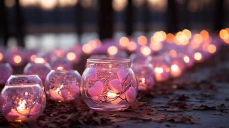 Tranquil Floating Candles Illuminating Calm Water Surface at Dusk, Evoking Serenity and Peaceful Ambiance in a Romantic Setting