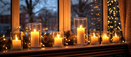 Close-up of Misted Window with Blurred Candlelight for Cozy Holiday Backgrounds