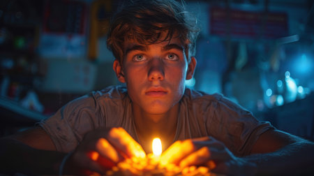 AI Generated. The solitary flame of a candle pierces the darkness