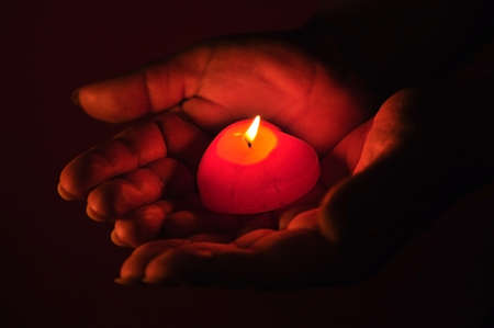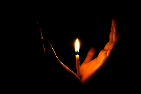 Hand and candle in the dark