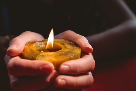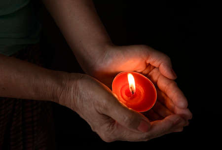 prayer - candle in hands. grief, sadness sorrow