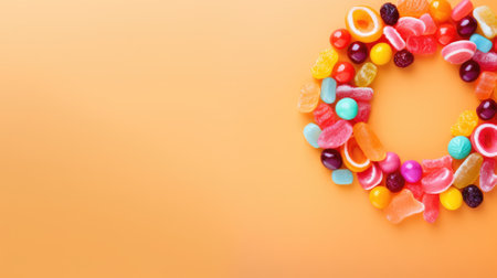 An overhead view of a mesmerizing mosaic of colorful candies, creating a vibrant backdrop