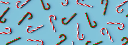 Christmas banner background of Christmas candy cane on a blue background, 3d rendering