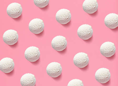 Pattern of white vanilla ice cream balls on pink background