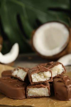 chocolate bar with coconut filling. Shallow dof