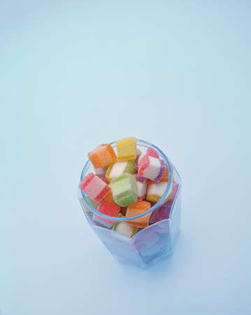 Mixed jelly marmalade, high angle view of taste sweet snack, colorful candy
