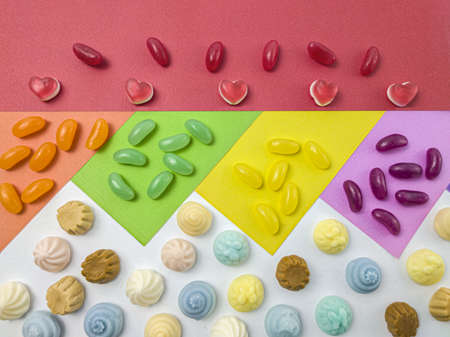 Still life of colorful candies. Flat lay
