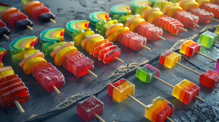 Colorful Assortment of Fruit-Flavored Popsicles on a Textured Background