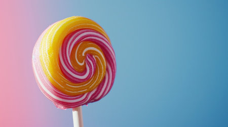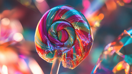 AI Generated. Colorful spiral lollipop on a stick in bright hues