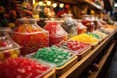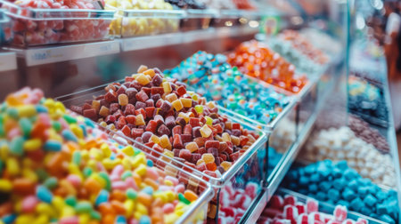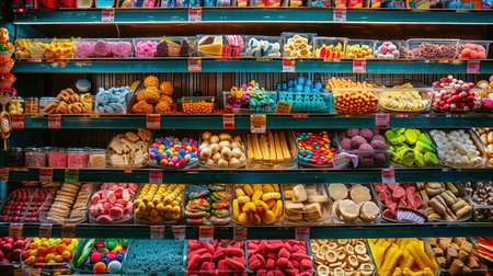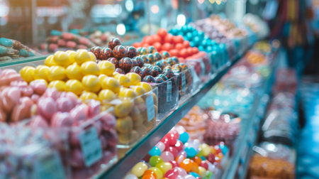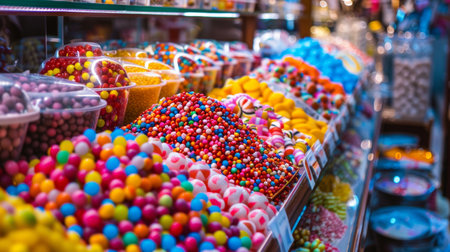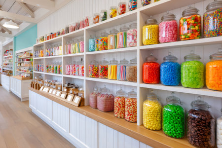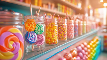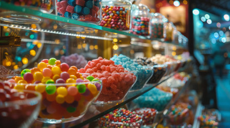 Explore a vibrant candy store filled with colorful sweets and treats. This delightful setting captures the joy and nostalgia of indulging in delicious confections.