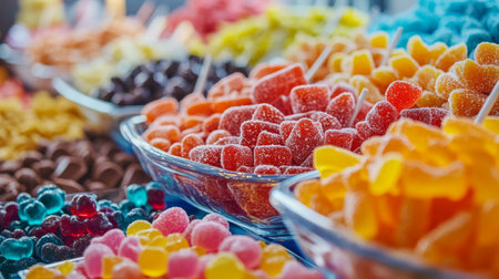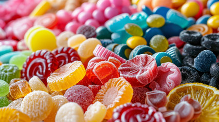 colorful candy, showing a variety of sweets such as jelly beans, licorice, and gumdrops in vibrant detail.