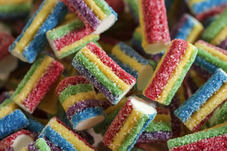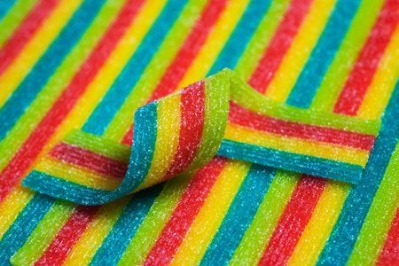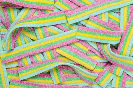 Rainbow sour jelly candies strips in sugar sprinkle