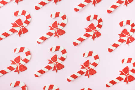 Christmas composition. Christmas candy cane pattern. Happy holidays and new year concept background.