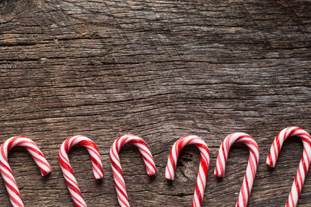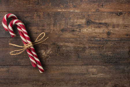 Christmas candy canes on wooden background