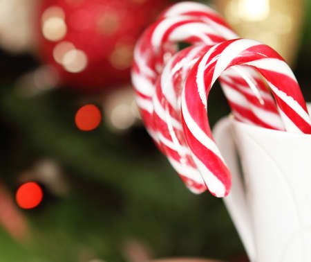 Christmas Candy Canes by the Christmas tree. Toned shot