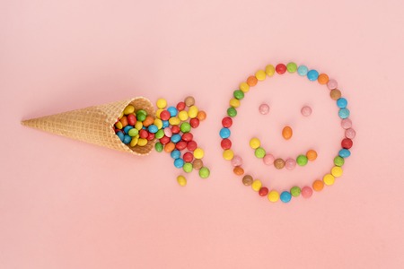 Top view of colorful candies, studio full frame shoot.