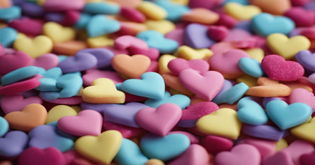 Flat Lay Colourful Heart Shaped Candy abstract multicolor background