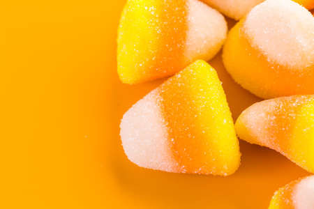 Colorful candy corn background. Close up. Shallow dof.