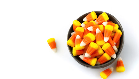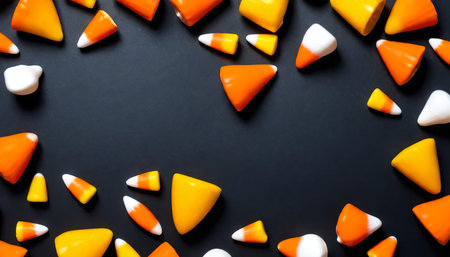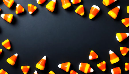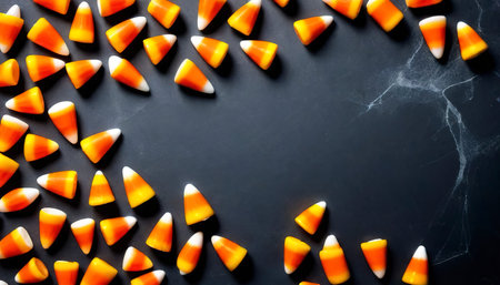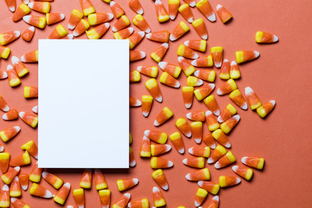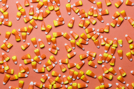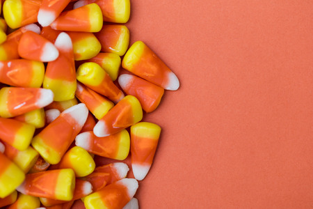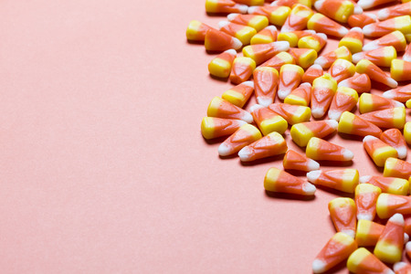 Candy corn Halloween background overhead shot with copy space