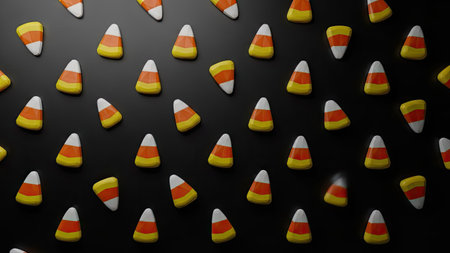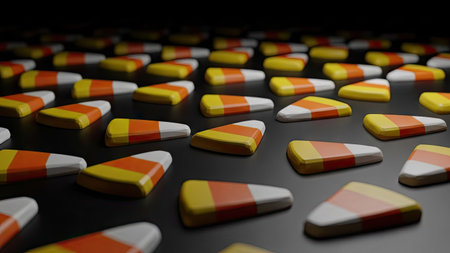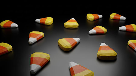 Candy corn on black background. 3D rendering. Computer digital drawing.