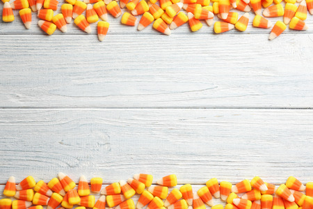 Halloween candy corn sweet background with copy space