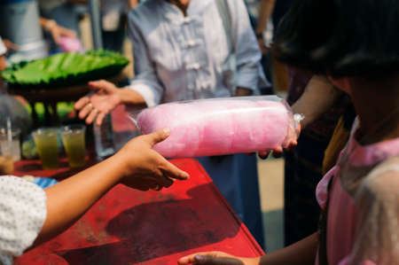 hands holding cotton candy. High quality photo