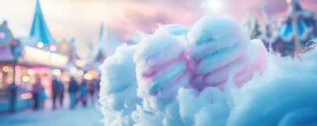 Soft clouds of candy floss create a whimsical atmosphere at the fair during a sunny afternoon in spring