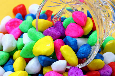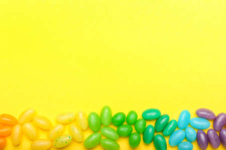Different jelly beans on yellow background