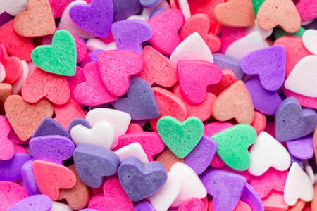 Flat Lay Colourful Heart Shaped Candy abstract multicolor background