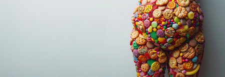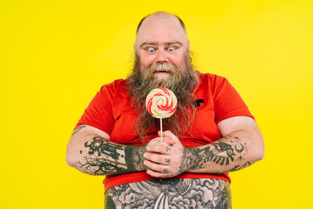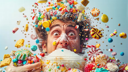 One person indulges in unhealthy eating with candy and lollipops generated by artificial intelligence
