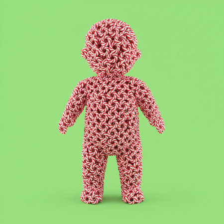 A boy made of Candy canes in green background which can be isolated from background keying. Created using AI tools.
