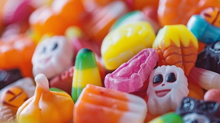 Colorful sugar candies in various shapes and sizes creating a vivid background.