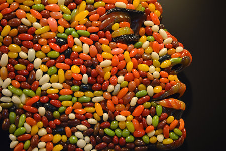 Vibrant artistic creation consists of colorful jelly beans coming together to form a delightful face. Generative AI